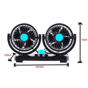 Con sus dos cabezales giratorios 360°, este ventilador reparte el aire hacia donde tú quieras: conductor, copiloto o pasajeros. Todos disfrutarán de un ambiente más agradable, sin gastar más energía ni combustible. 🚘